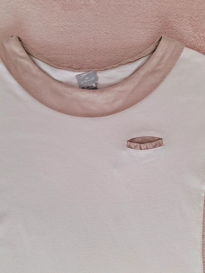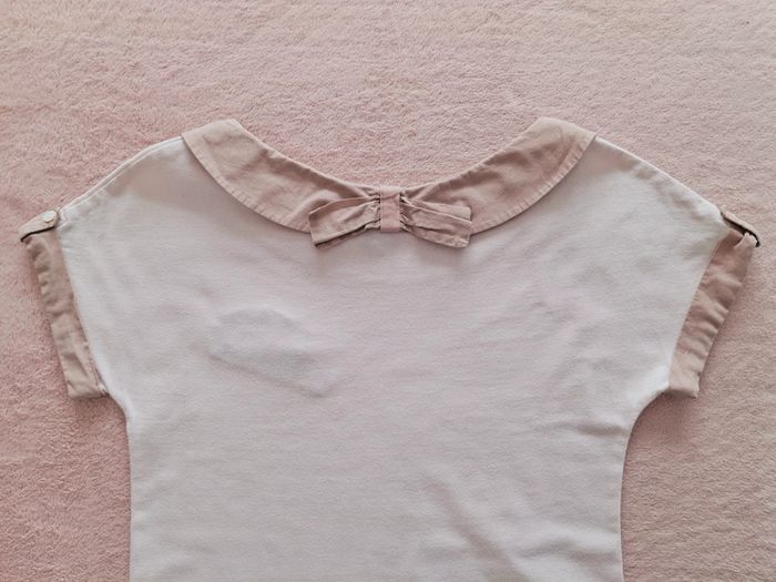 Robe Cyrillus 10 ans Manches courtes Bi matières Col, bord des manches et bas de la jupe en coton beige Noeuf décoratif à l'arrière du col 100% coton Très bon état #adelaide7624vetementsfille10ans Rose clair et beige