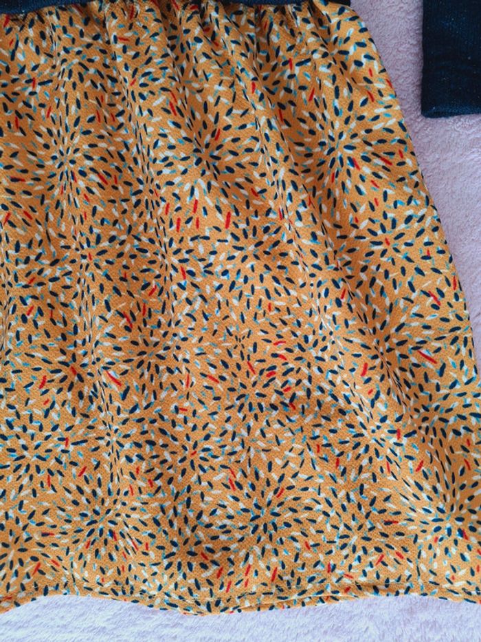 Robe Chipie 10 ans Bi matière Haut à capuche gris foncé pailleté avec Broderies décoratives Bas de la robe en voile jaune moutarde à motifs gris bleu blanc et rouge, doublé Très bon état #adelaide7624vetementsfille10ans