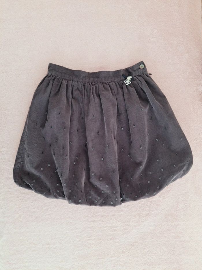 Jupe Tartine et Chocolat 10 ans forme boule velours côtelé gris et sequins