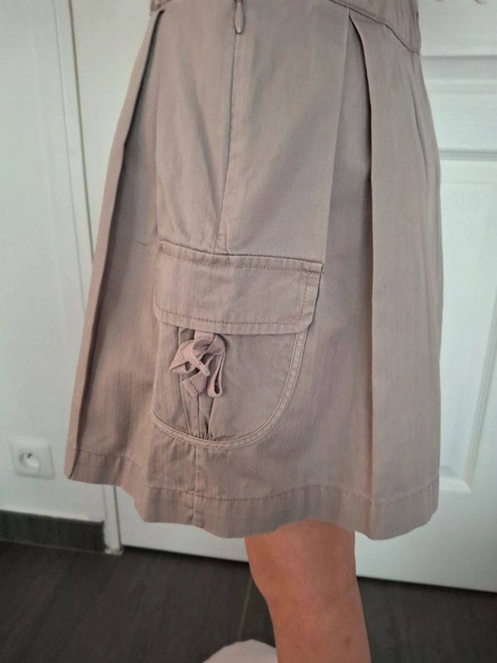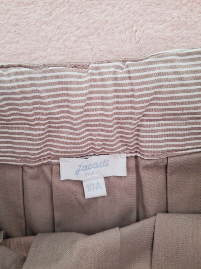 Jupe plissée Jacadi 10 ans Beige 2 poches latérales avec petits nœuds décoratifs Taille ajustable avec élastique Fermeture éclair invisible sur le côté et 2 petits boutons 100% coton Très bon état #adelaide7624vetementsfille10ans