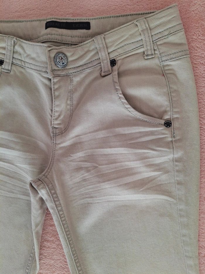 Jean IKKS 10 ans coupe droite regular fit beige grisé - photo numéro 3