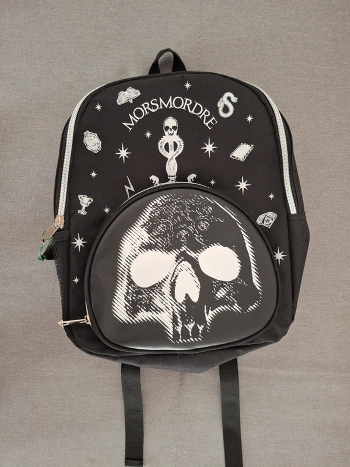 Un sac à dos Morsmordre de Harry Potter Dark Arts by WARNER BROS®. Entrez dans le monde enchanteur de la sorcellerie avec ce sac à dos noir captivant, méticuleusement conçu pour les plus fervents amateurs d'Harry Potter. Fabriqué à partir de textiles de qualité supérieure et orné d'embellissements Harry Potter authentiques. Le choix ultime pour ceux qui se délectent du côté plus sombre et mystérieux de l'univers des sorciers. Noir et argent Neuf sans étiquette