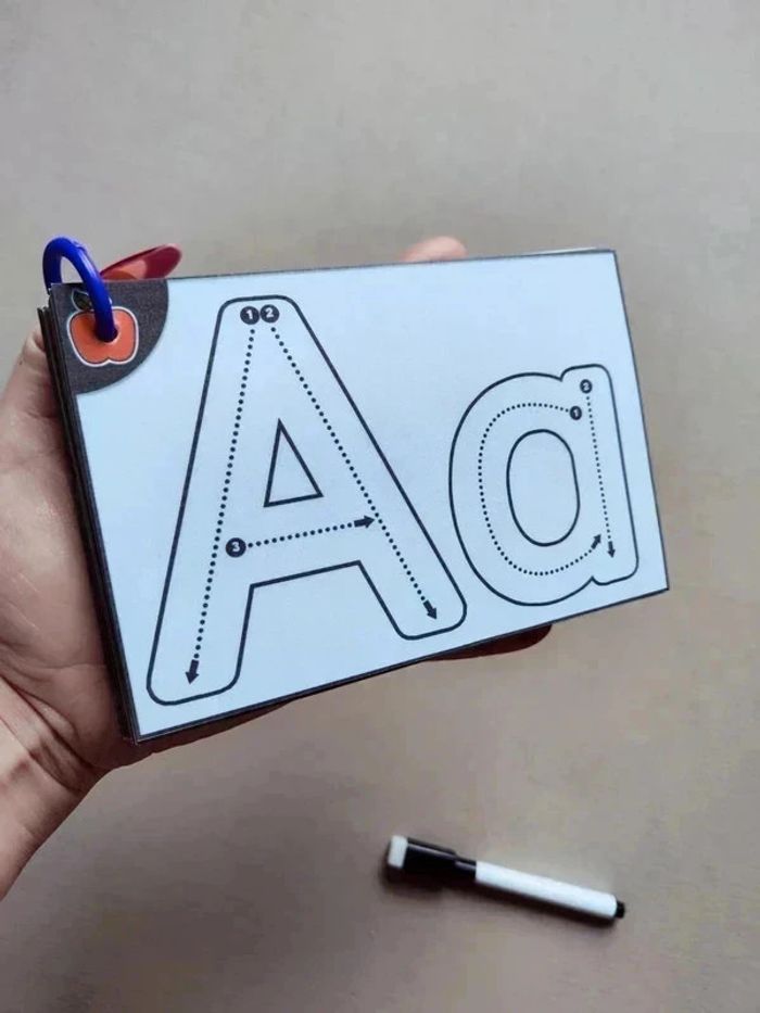 📍26 grandes cartes pour apprendre à tracer les lettres tout en s'amusant ! 📍Taille : 15,5 x 10 cm. 📍Effaçable à l'infini ! 📍Fournies sans le feutre. 📍Papier 250G plastifié pour une bonne tenue ! 📍Relié par un anneau facilement amovible. 📍Neuf. 👉Pour trouver d'autres activités c'est par ici : 🔎#elisabethdesignTracerEcriture 📫⏳ Envoi rapide et soigné le jour même de l'achat dans la mesure du possible! 🤝 Frais de port ajusté au plus bas.