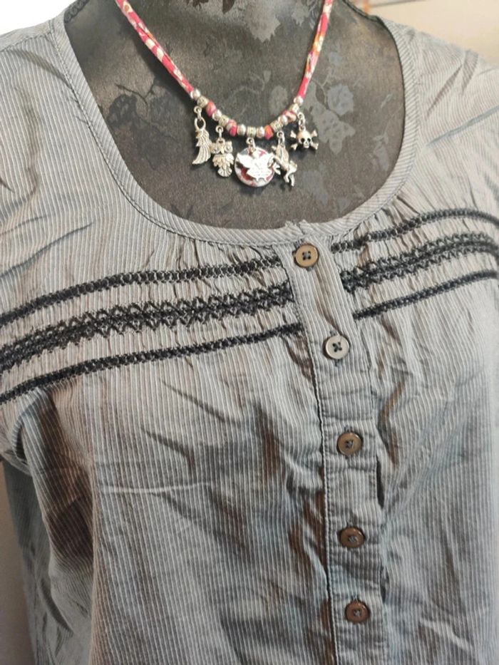 Petits boutons devant et manches Finement rayée Plus d'étiquette taille Petit accroc réparé sur le bas à droite. 📣 Autres articles de cette taille via 👇 #angelotitou160304femme #angelotitou160304XLfemme #angelotitou160304XXLfemme 📢 Réductions activées dès deux articles #camaieu ⛔ PAS D'ENVOI VIA VINTED GO ❌ TROP DE COLIS PERDUS