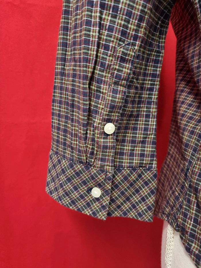 Levi's Très belle chemise Ton mauve et vert + fils métalliques argentés Taille S Parfait état Coupe cintrée 99% coton 1% métallique Longueur: 60 cm Taille poitrine à plat: 46 cm Carrure (épaule à épaule): 38 cm #levis #chemisefemme EMMA.5