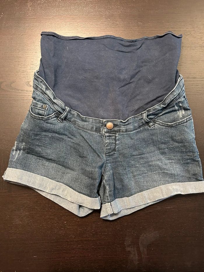 2 shorts de grossesse taille 38 Kiabi Portés après mon accouchement pour le post-partum en été.