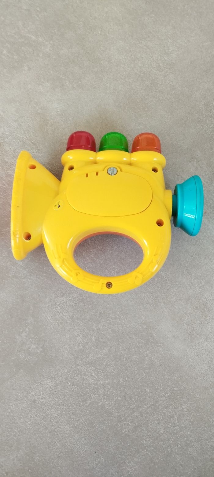 Bonjour, Je vends cette p'tite trompette de la marque VTech en bon état, un peu usé sur le devant voir photo. Vendu sans pile mais fonctionne