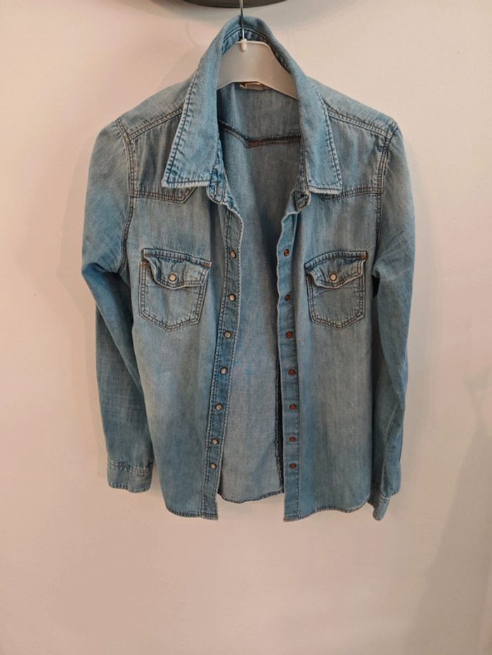 Chemise effets jeans bleu clair avec boutons pressions et col. Homme. Taille 38 marque H&M 📌 Je vends plein de vêtements homme sur mon dressing 🩵 réduction sur les lots🩵