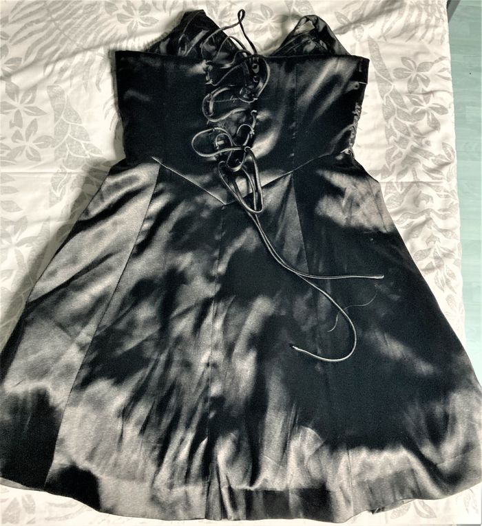 Robe noire satinée dos laçé Juju et Christine taille 42/44 - photo numéro 3