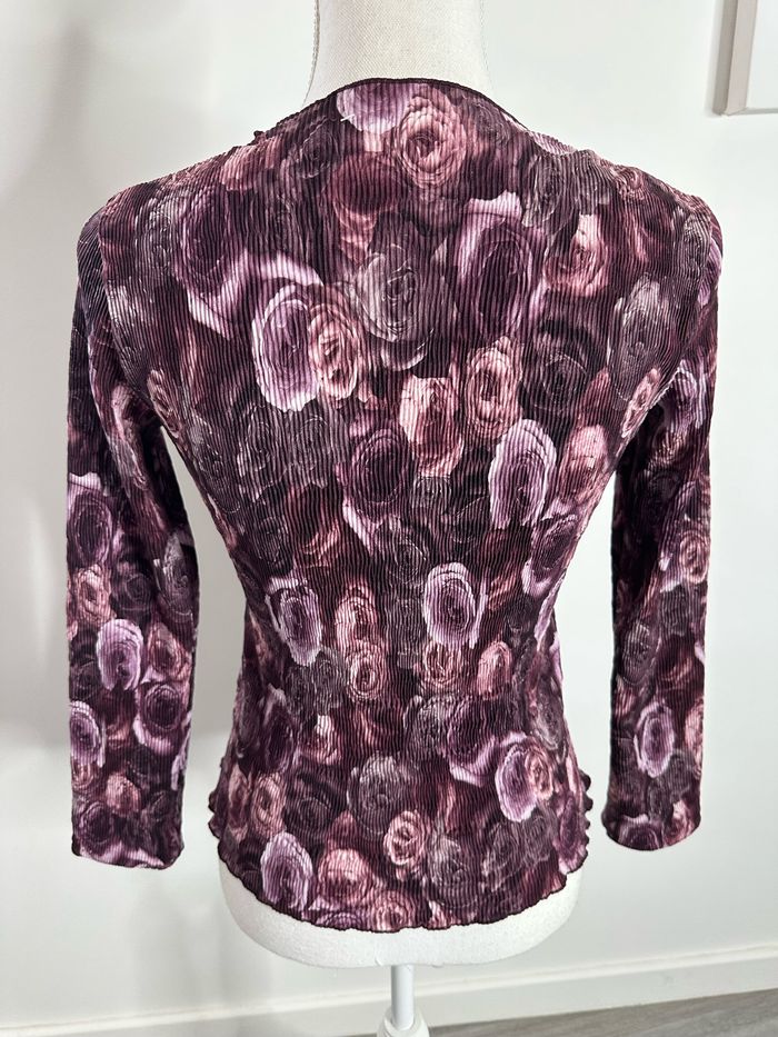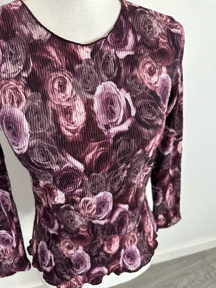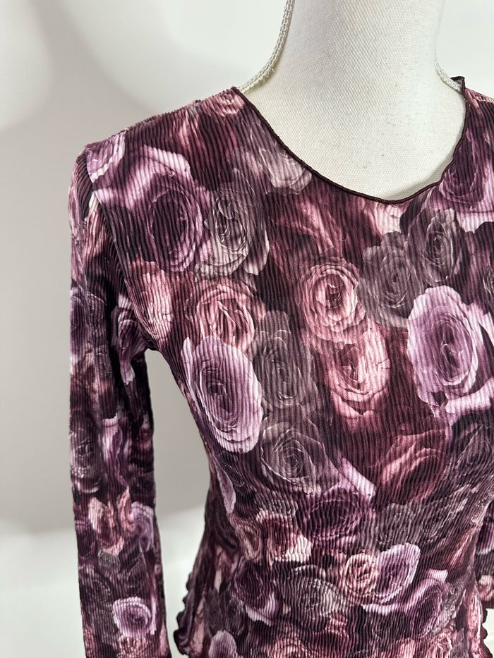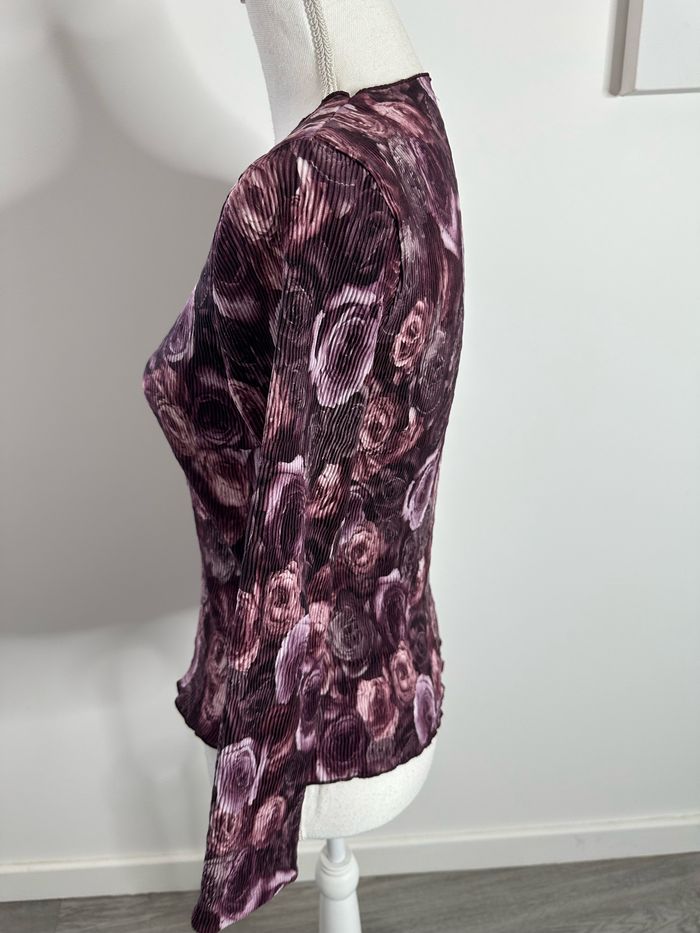 Blouse plissée à fleurs rose et violette Y2K Vintage T36 S