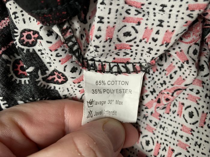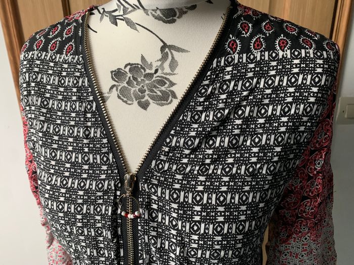 Marque "Kaylla", décolleté zippé, manches 3/4, Tour de poitrine 100 cm, longueur 90 cm, matière 65% coton, 35% polyester.