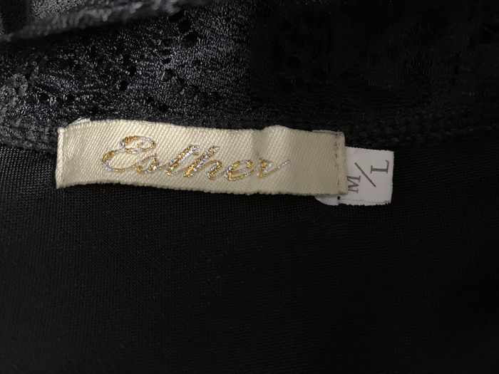 Marque "Esther", Jamais portée. encolure et épaules en dentelle, fermeture zip dos. Tour de poitrine 85 cm, tour de taille 74 cm, longueur 100 cm. matière extensible 100% polyester.