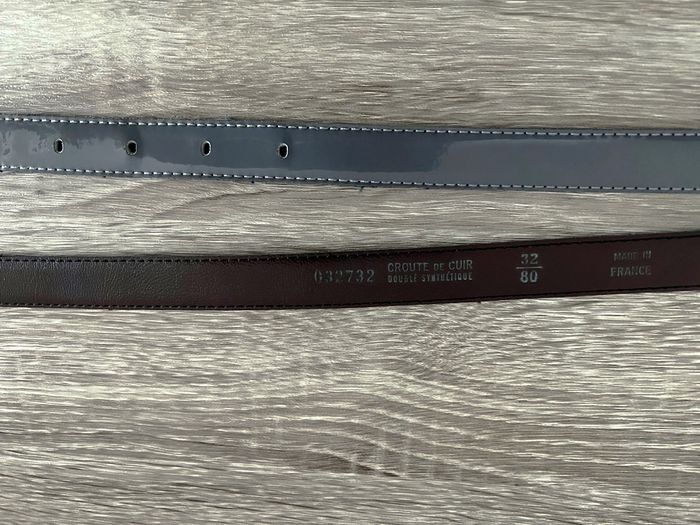 Ceinture grise vernie cuir véritable - photo numéro 2