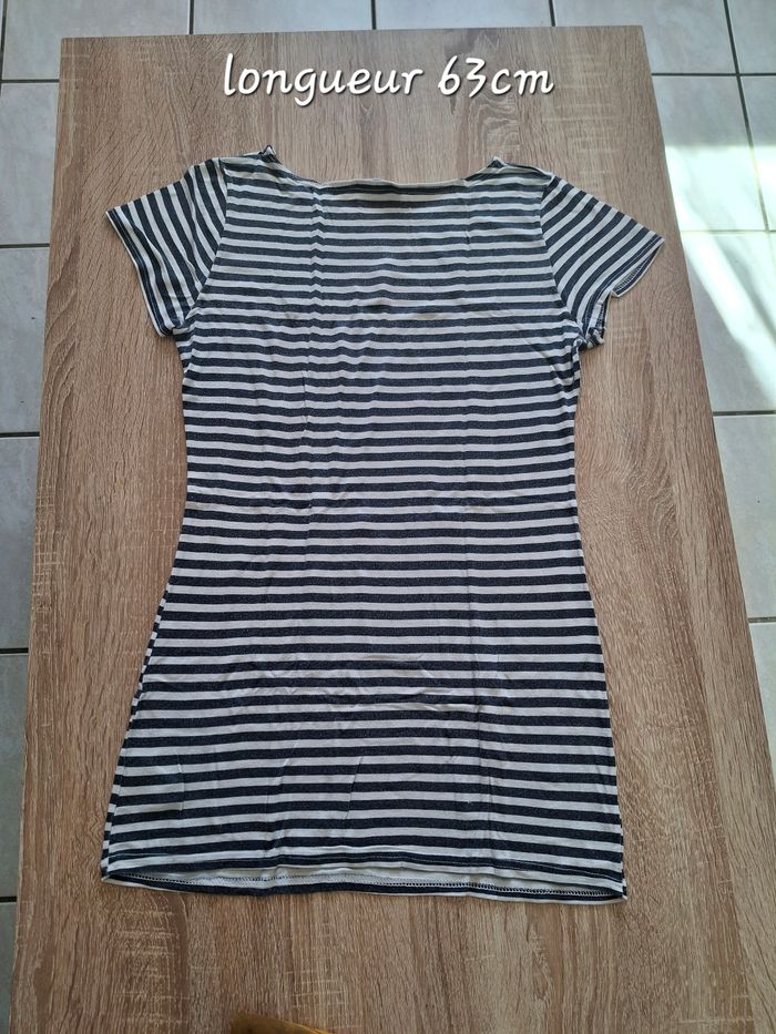 Tee shirt long rayé bleu et blanc avec dessin taille 1