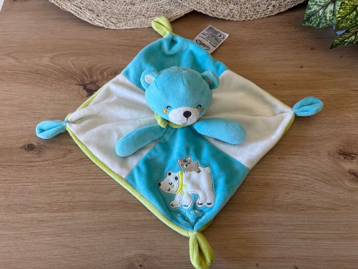 Doudou plat ours polaire bleu vert mots d enfants - photo numéro 1