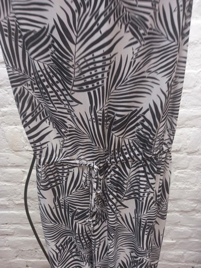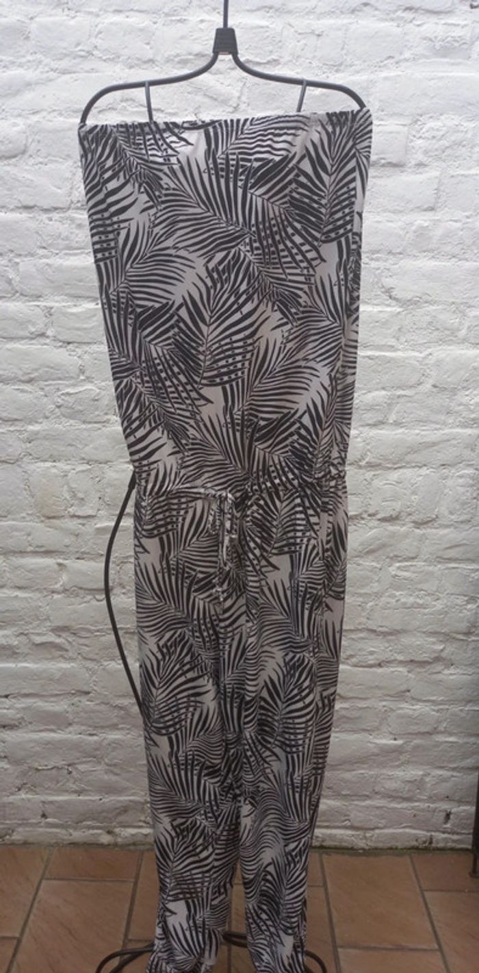 Salopette noire et blanche Épaules élastiques dénudées Lien de serrage à la taille Deux poches