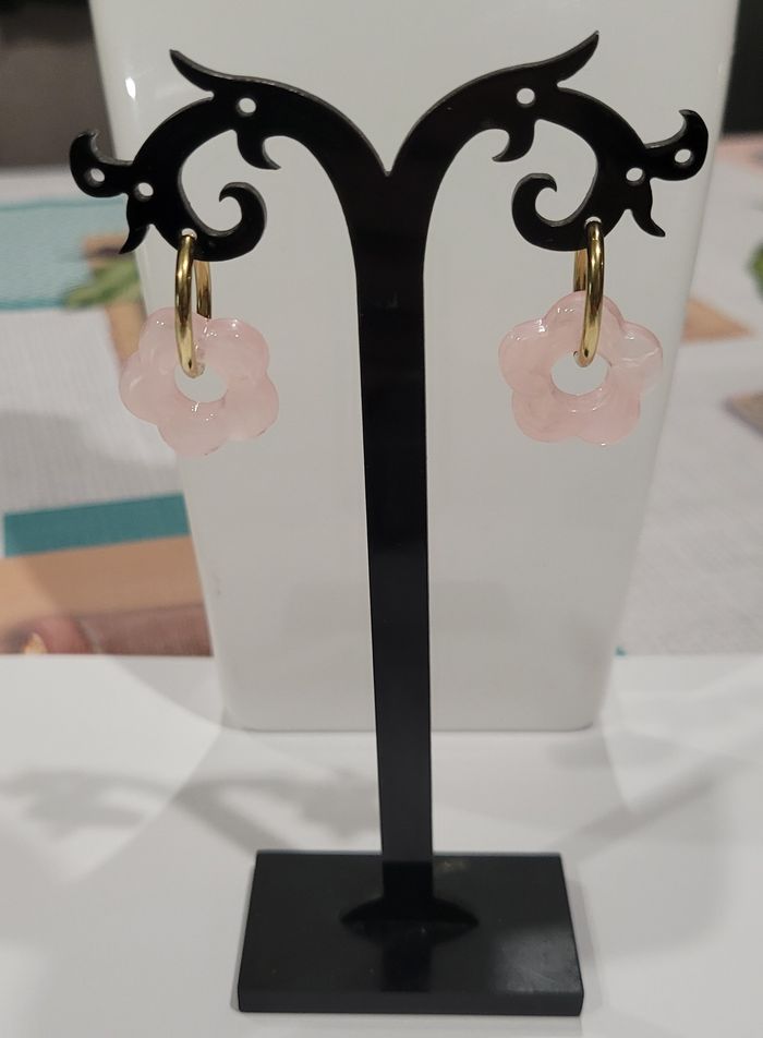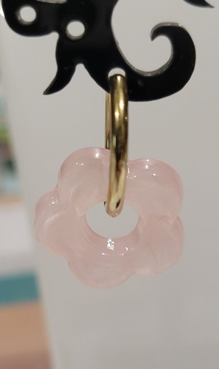 BOUCLES D'OREILLES CREOLES ANNEAUX DORES FLEURS ROSES ! NEUVE ! - photo numéro 4