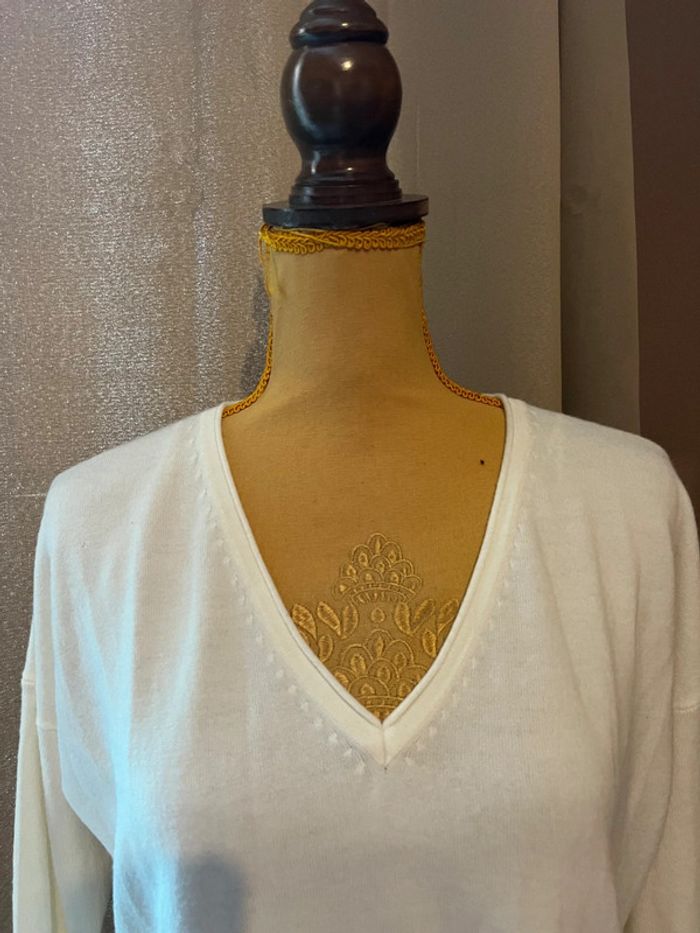 Pull col v beige ecru la halle taille M - photo numéro 5