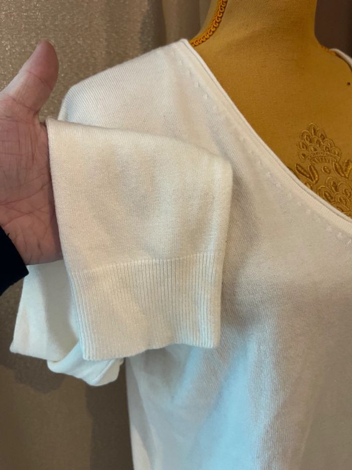 Pull col v beige ecru la halle taille M - photo numéro 4