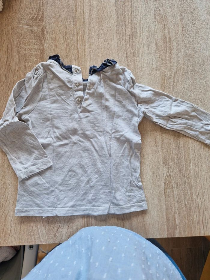 T-shirt manches longues du pareil au même en très bon état avec col bleu marine. Taille 86cm.