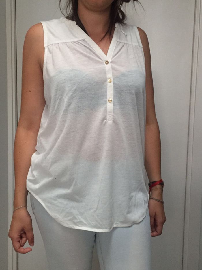 Débardeur ample blanc aux boutons dorés. En bon état. Taille S