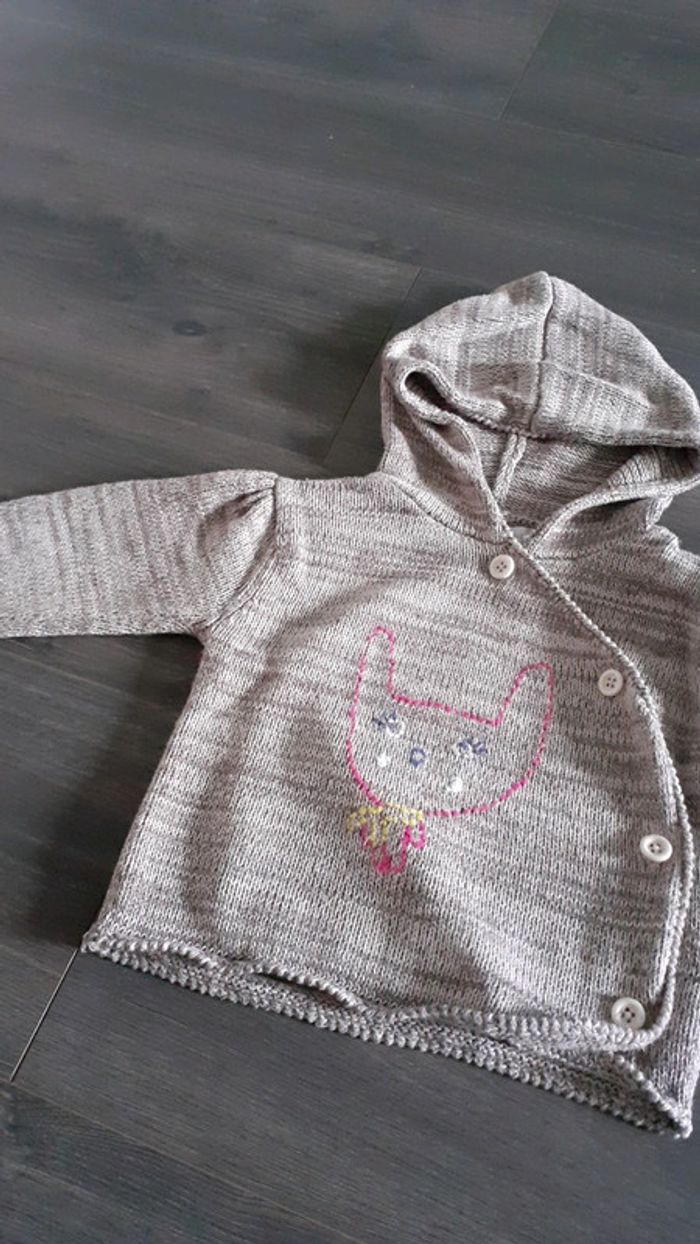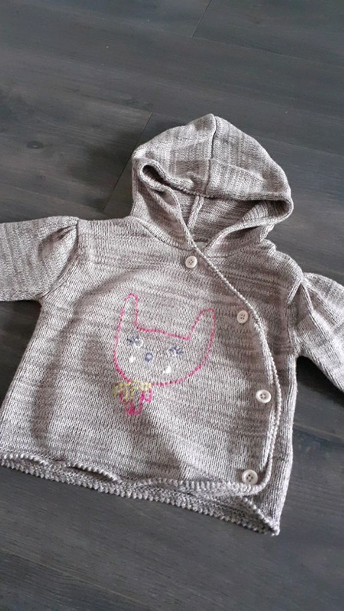 pull capuche bon etat en maille taille 12 mois