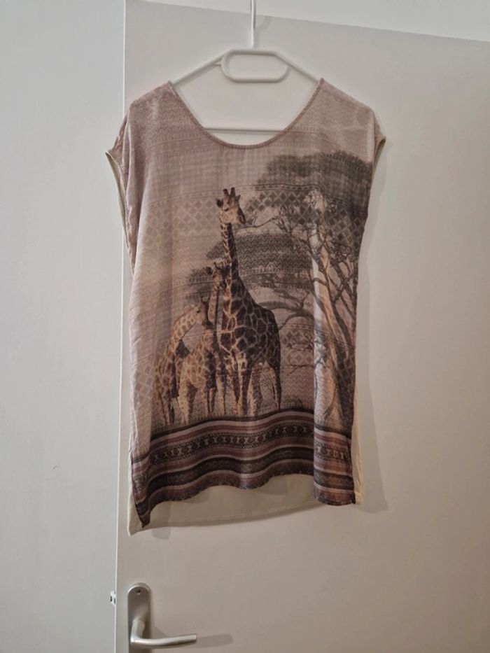Tee-shirt tunique manche courte femme motifs girafe beige TBE taille M grain de malice - photo numéro 1