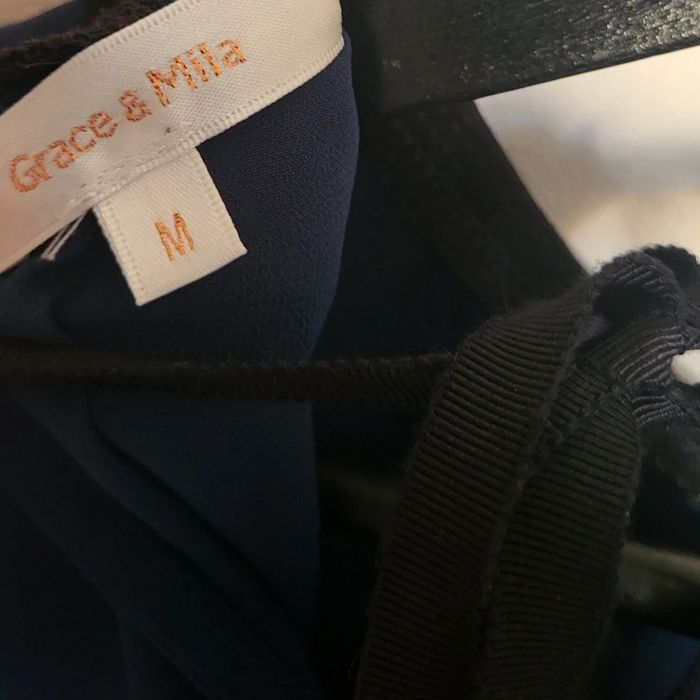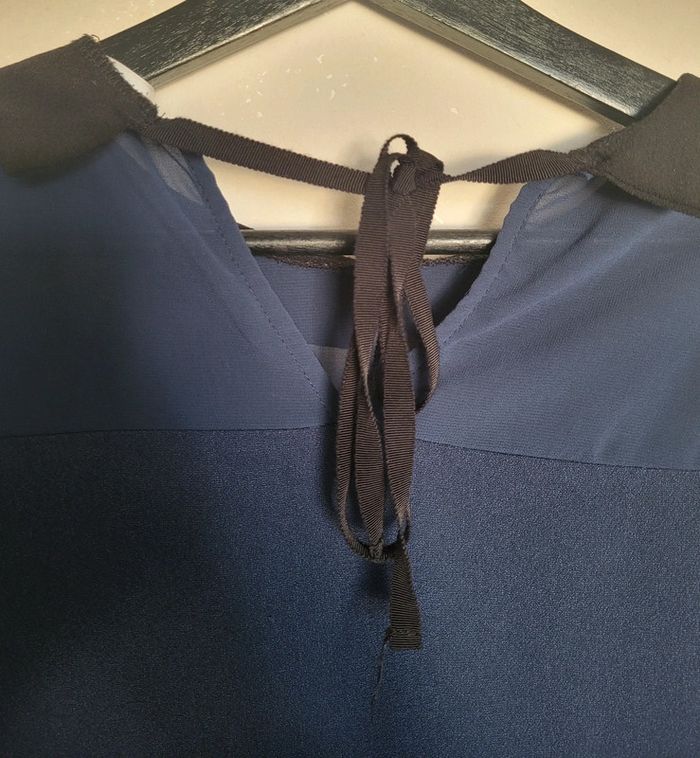 📌Je crée votre lot, demandez moi Blouse bleu marine, en voile, col noir et lien à nouer derrière le cou, manche 3/4 ➡️Largeur à plat sous les bras 48 cm ➡️96% polyester 4% élasthanne ⭐Excellent état ✈Envoi rapide des colis 💗 Abonnez vous à mon profil, nombreux articles ajoutés régulièrement ! #laetitresors_blouse38 #blouse #bleu #marine #voile #grace #mila #col #noir #lien #nouer #cou #manche #longue #chic #uni #fluide #fête #occassion #casual #chemisier #chemise