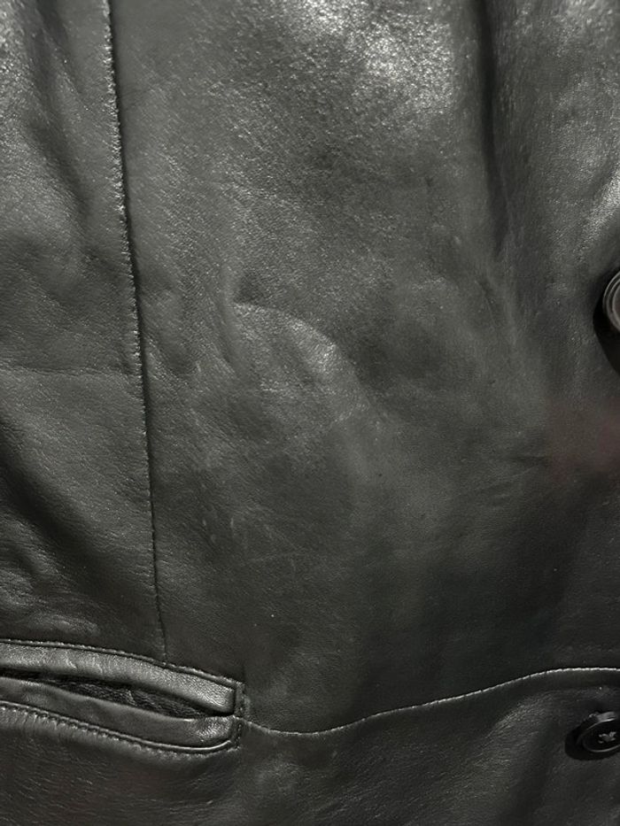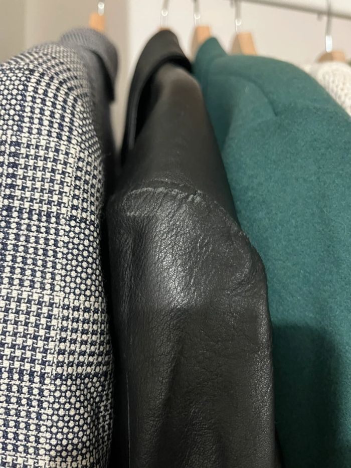 Veste en cuir véritable vintage et oversize uni noir - photo numéro 11