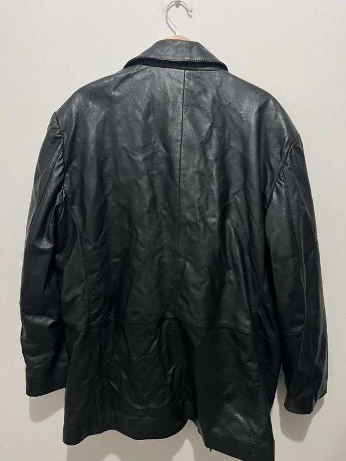 Veste en cuir véritable vintage et oversize uni noir - photo numéro 3
