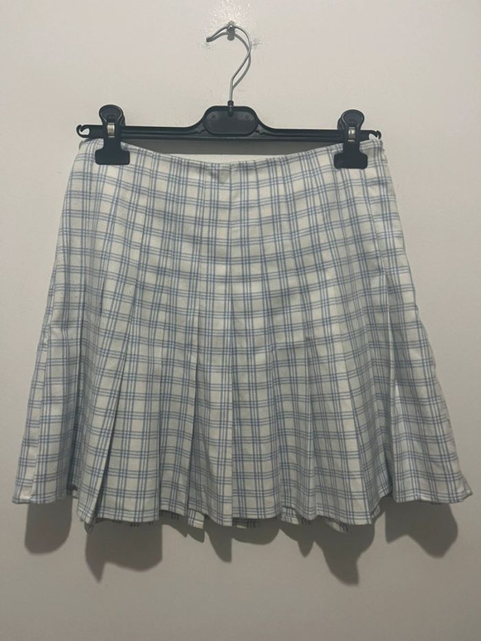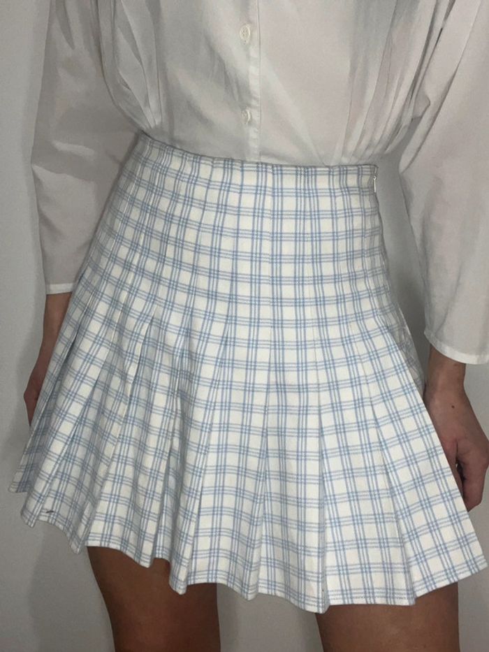 Jupe tennis / patineuse blanche avec fines rayures / carreaux bleu clair - photo numéro 1
