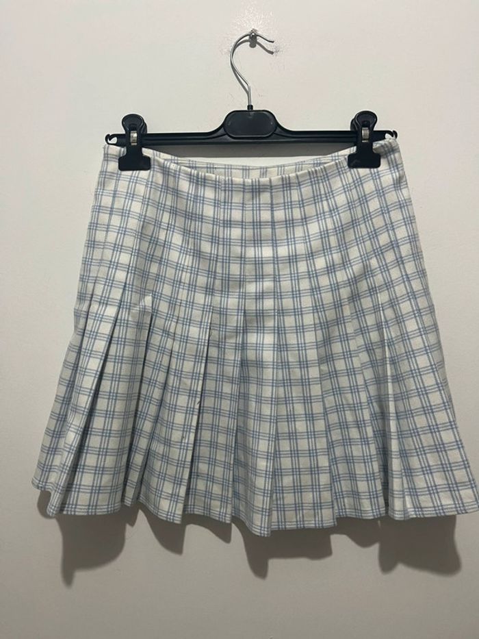 👗 Jupe courte, taille haute, rétro style vintage, coupe jupe tennis / jupe patineuse, blanc avec motif rayures / carreaux style écossais bleu ciel 🧺 Articles soigneusement entretenues dans un bel espace de vente : n’hésitez pas à découvrir le reste sur mon profil ✨ ‼️ Intérieur à la taille un peu jauni (voir dernière photo) #vintage #vintagestyle #retro #retroskirt #casual #minimalist #basic #cosy #mignion #romanticstyle