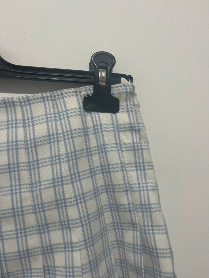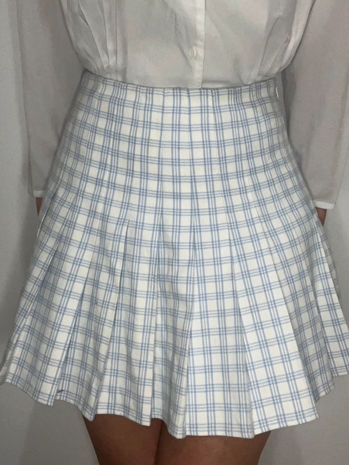 Jupe tennis / patineuse blanche avec fines rayures / carreaux bleu clair - photo numéro 3