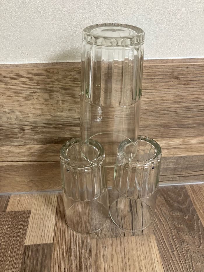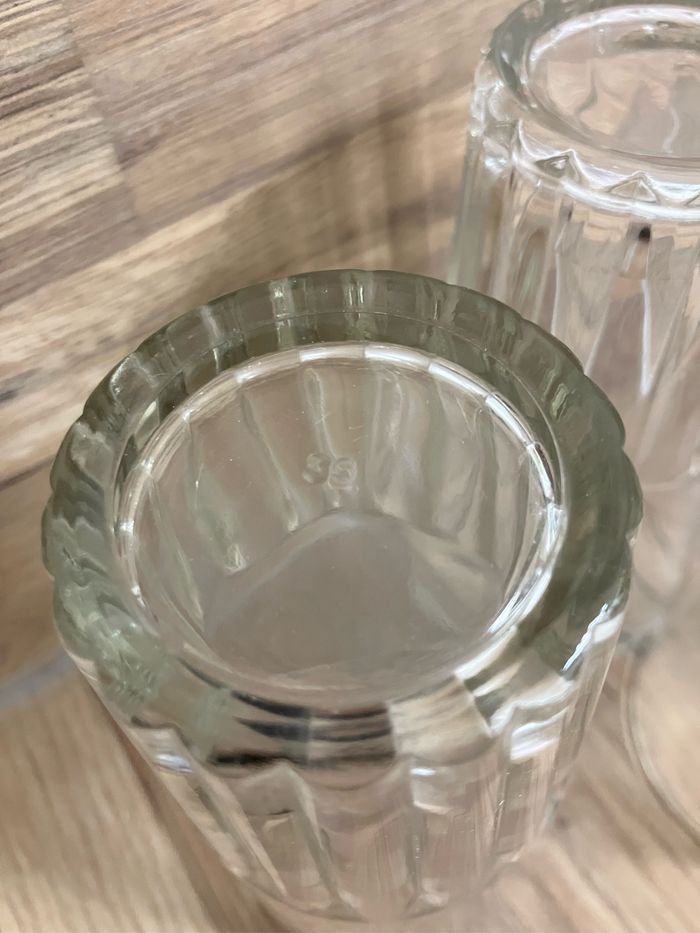 Ce lot comporte 3 grands verres en bon état : ni fêlure, ni ébréchure. 1/3 de la basse avec des stries Dimensions : - hauteur : 12 cm - diamètre : 6 cm Pas de vente à l’unité