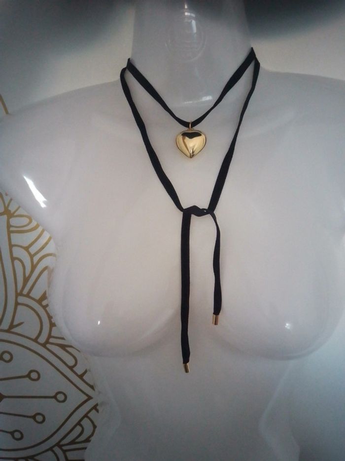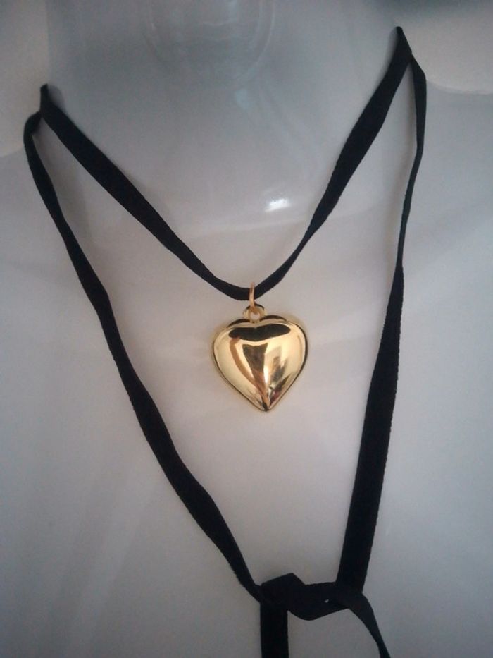 Sautoir en ruban de velours et coeur doré - photo numéro 4
