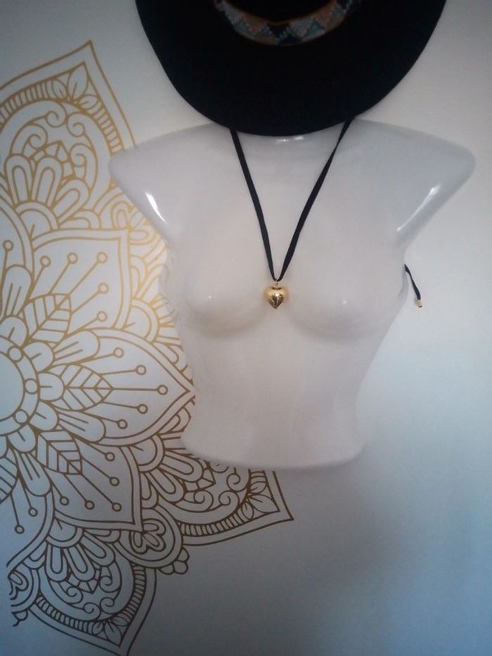 Sautoir en ruban de velours et coeur doré - photo numéro 3