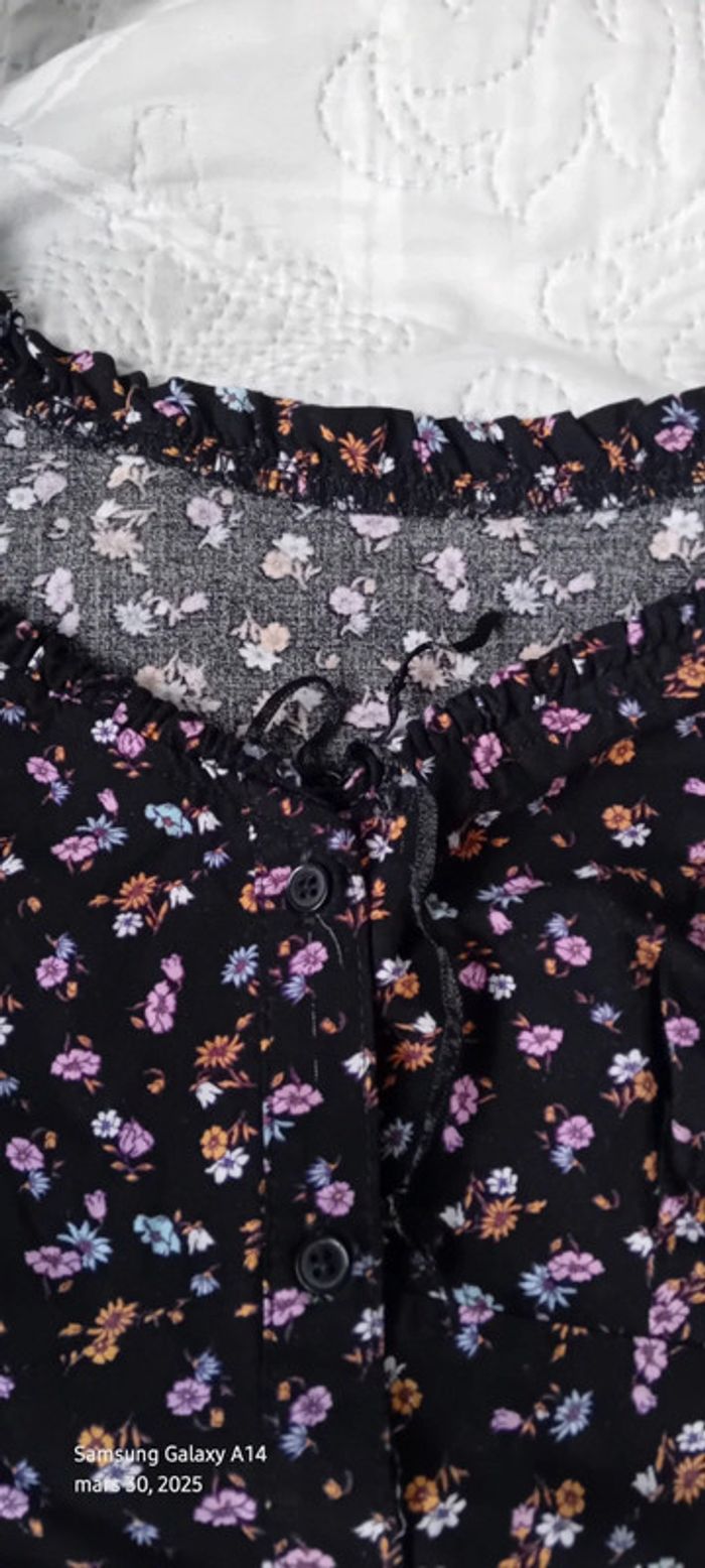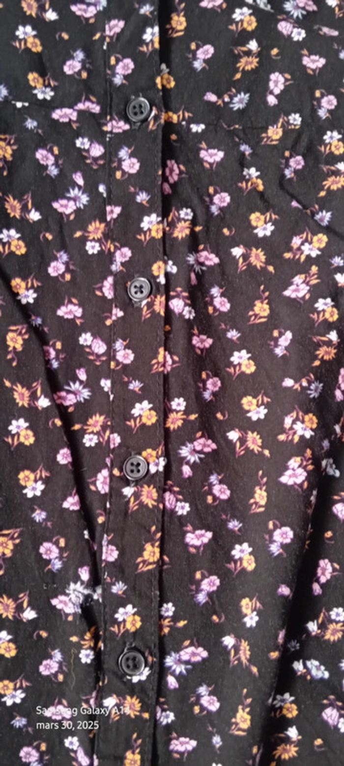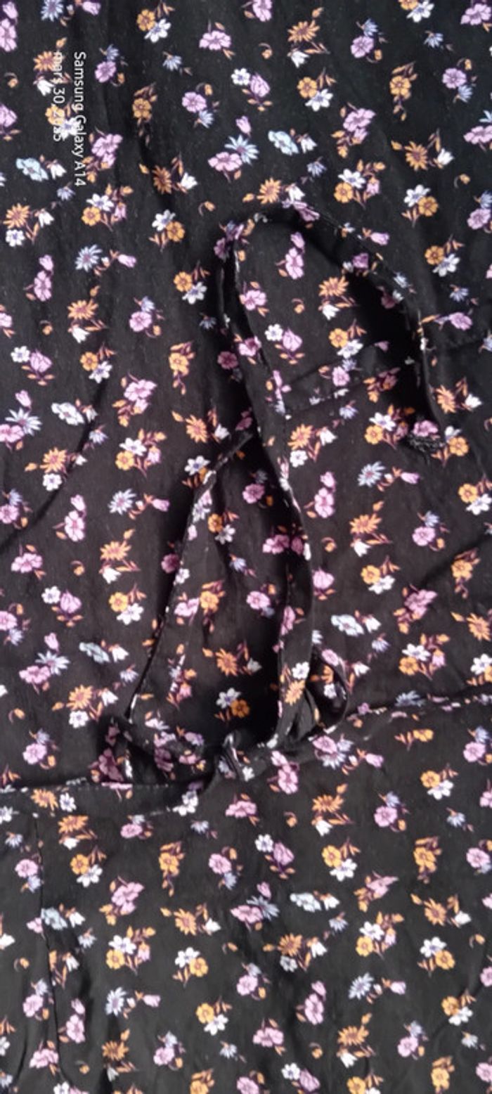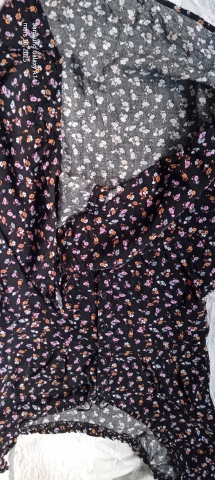Robe légère en viscose et coton avec col large Bardot elastique avec lien boutons devant lien à nouer au dos manches courtes imprimé fleurs multicolores sur fond noir longueur 87 cm largeur aisselles à aisselles 45 cm peu portée en très bon état #midole #midolefemme #midolefemme38 #midolefemme40 ##femme40 #robefemme40 #robeimpriméfleuri40 #robeprintemps #robeprintemps38