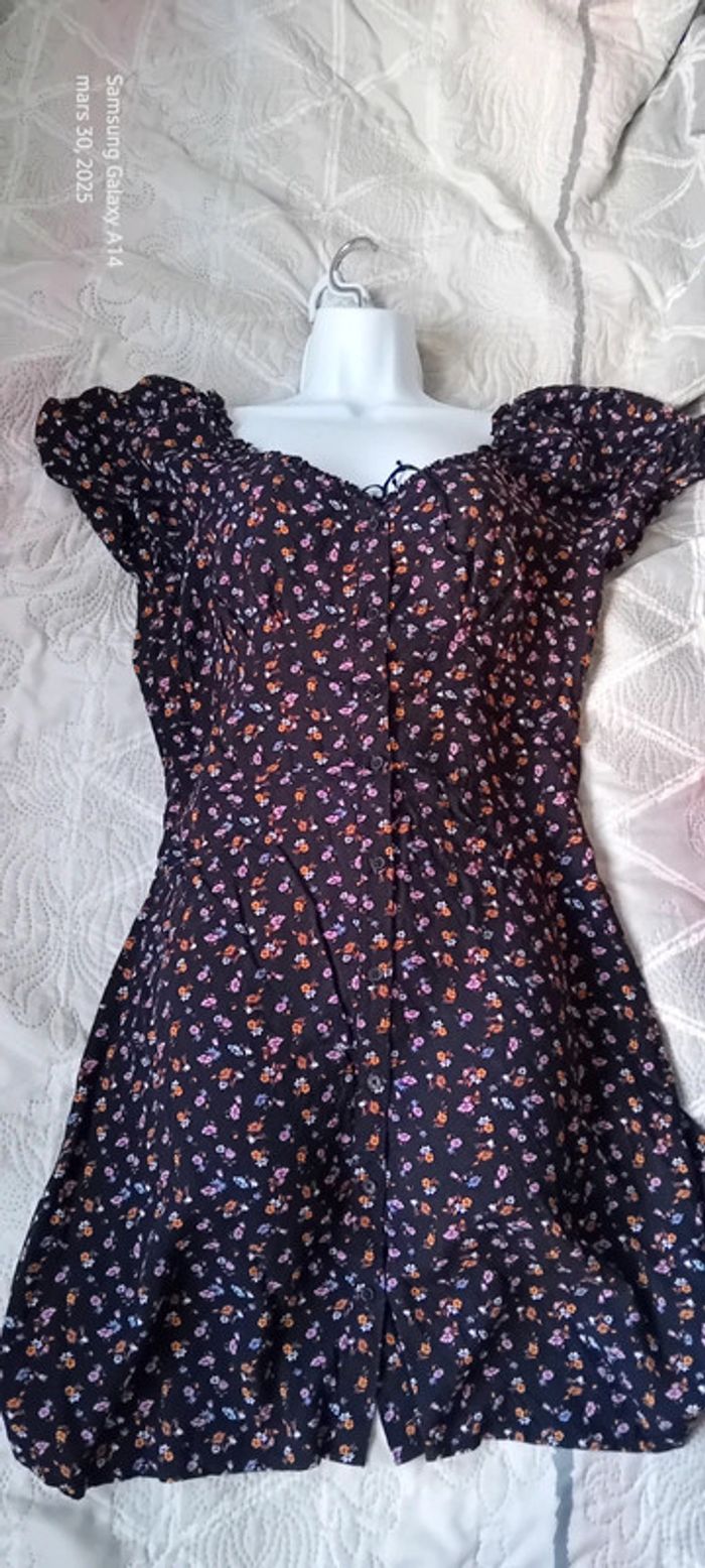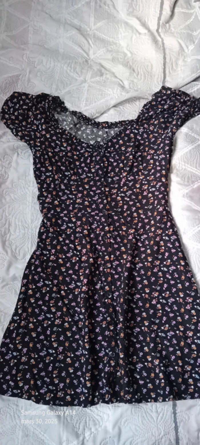 Robe imprimé fleurs avec boutons col Bardot elastique noir femme 38/40 - photo numéro 1