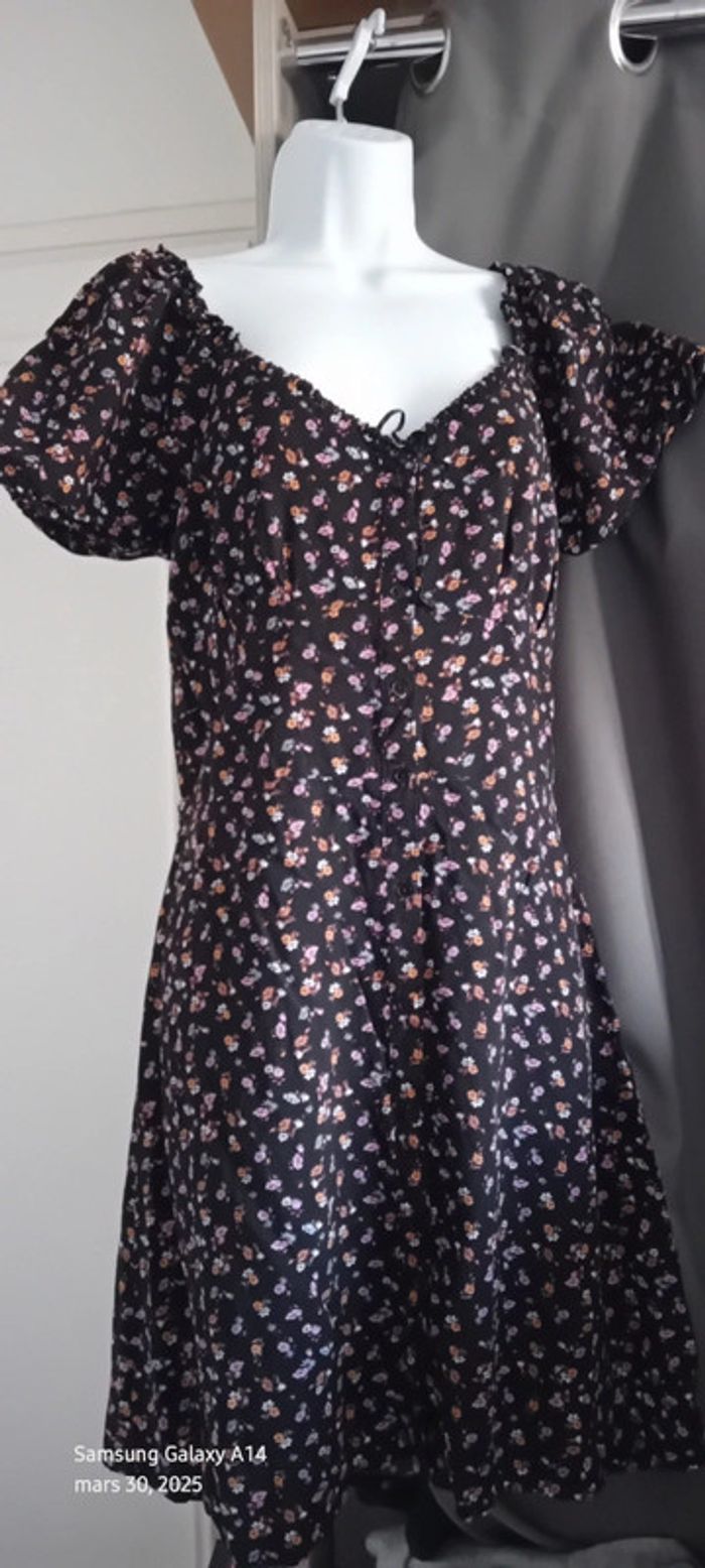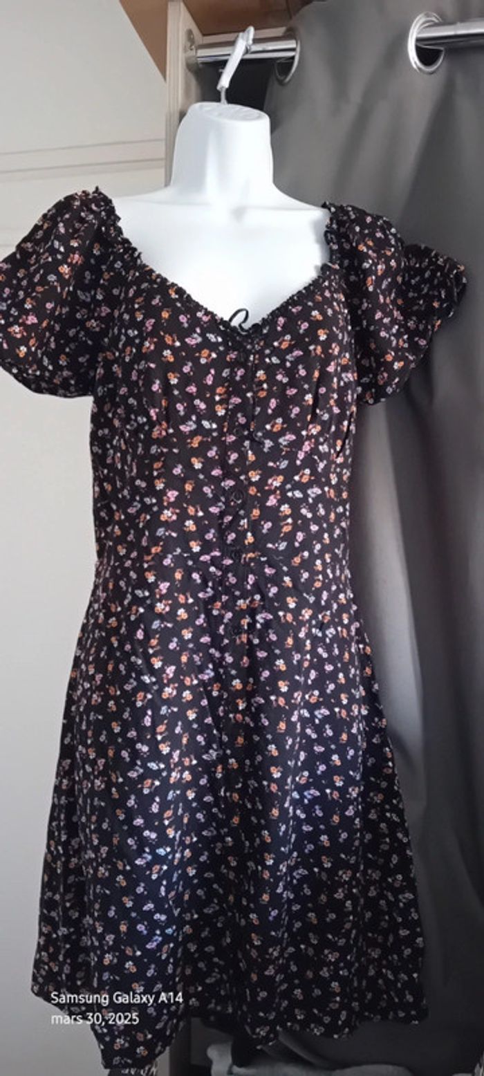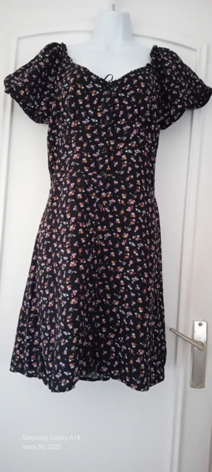Robe imprimé fleurs avec boutons col Bardot elastique noir femme 38/40 - photo numéro 9