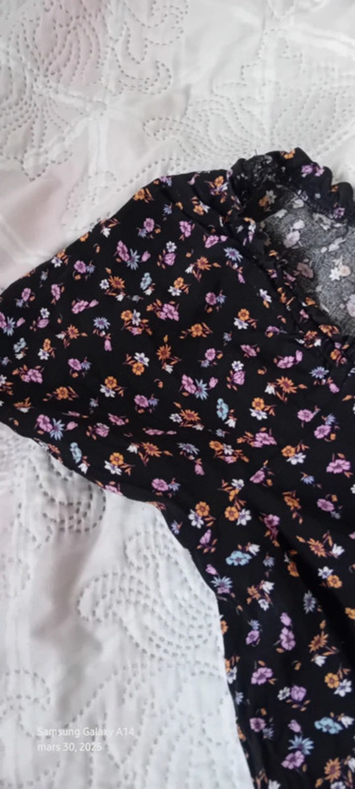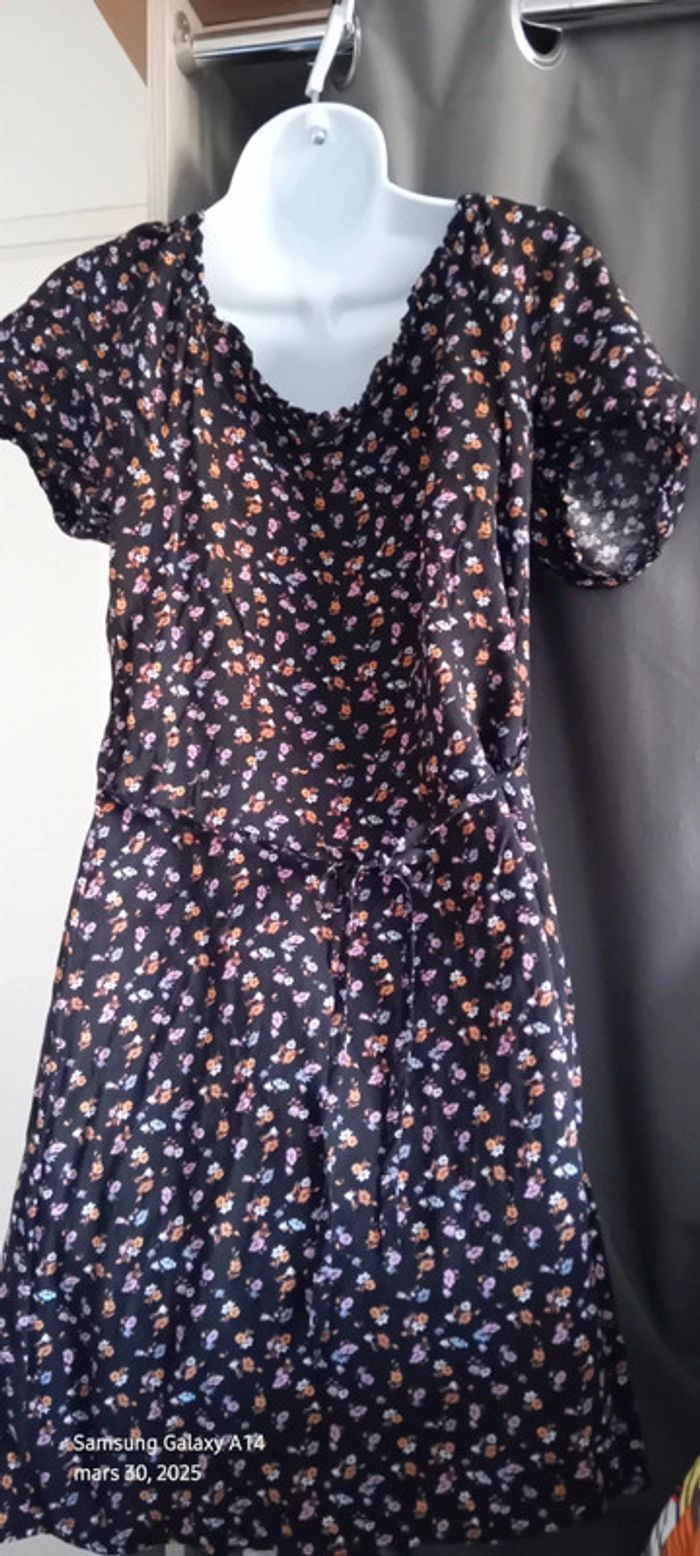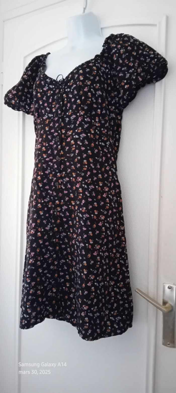 Robe imprimé fleurs avec boutons col Bardot elastique noir femme 38/40 - photo numéro 9