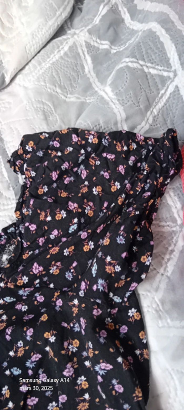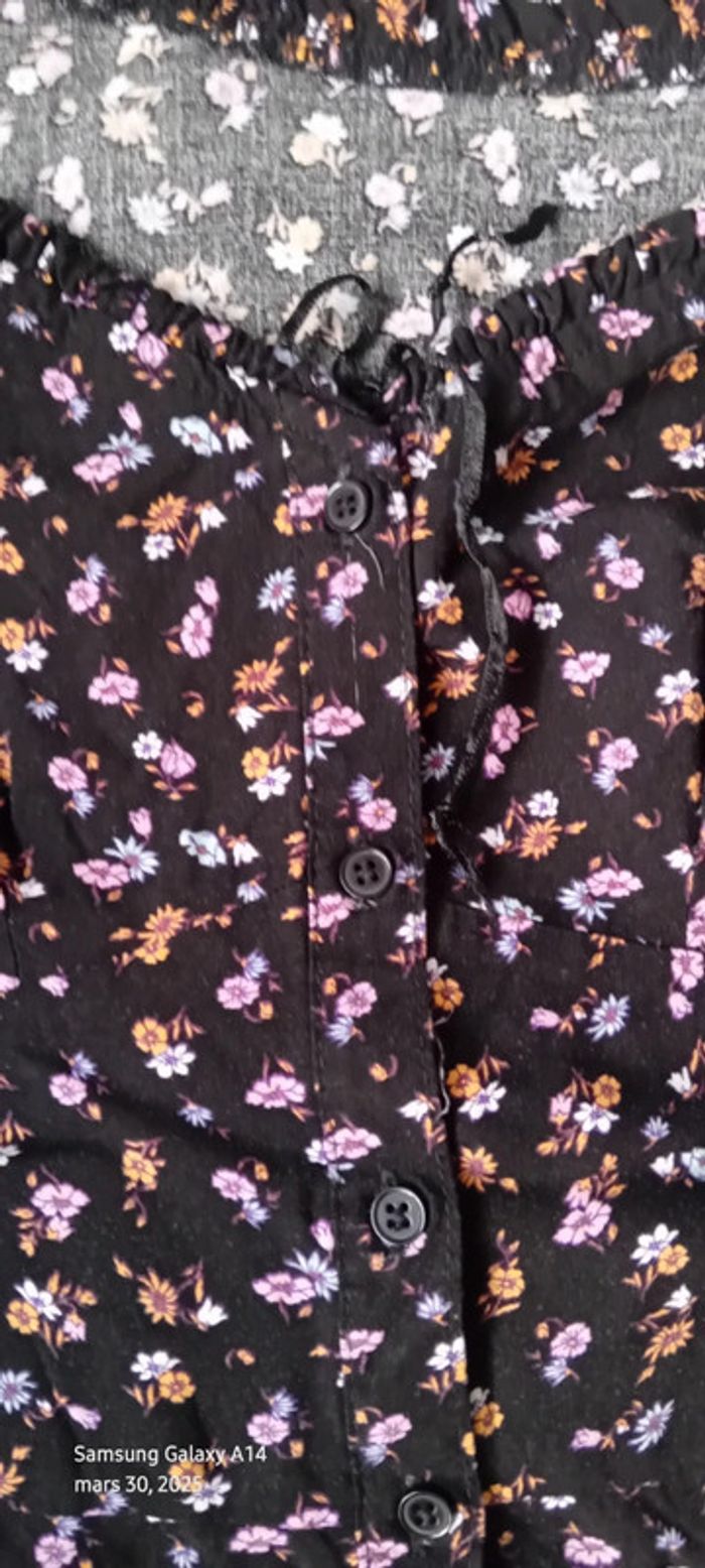 Robe imprimé fleurs avec boutons col Bardot elastique noir femme 38/40 - photo numéro 14