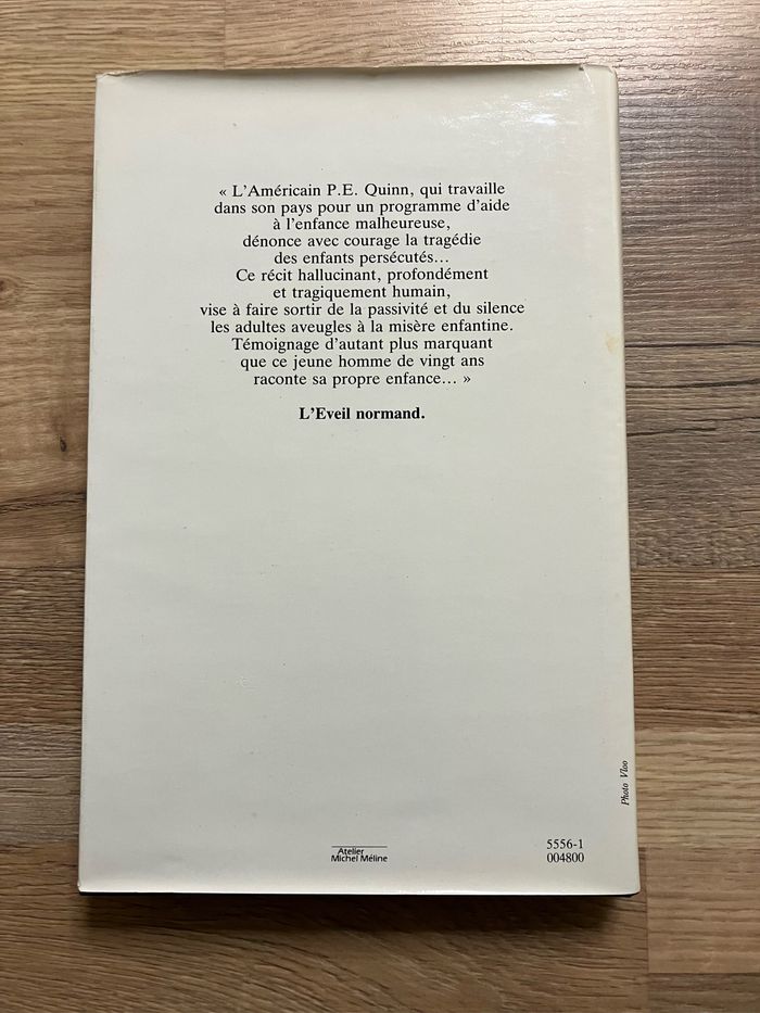 Livre sur les enfants martyrs Avec couverture Éditions France Loisirs En bon état général : ⚠️ toutefois les 2 premières pages au tout début du livre se détachent sur la partie basse et la 3ème est complètement détachée (voir photo) Peuvent être solidarisées avec du scotch Quelques traces jaunes à la fin du livre (voir photo) Sinon ni déchirure, ni écriture 191 pages