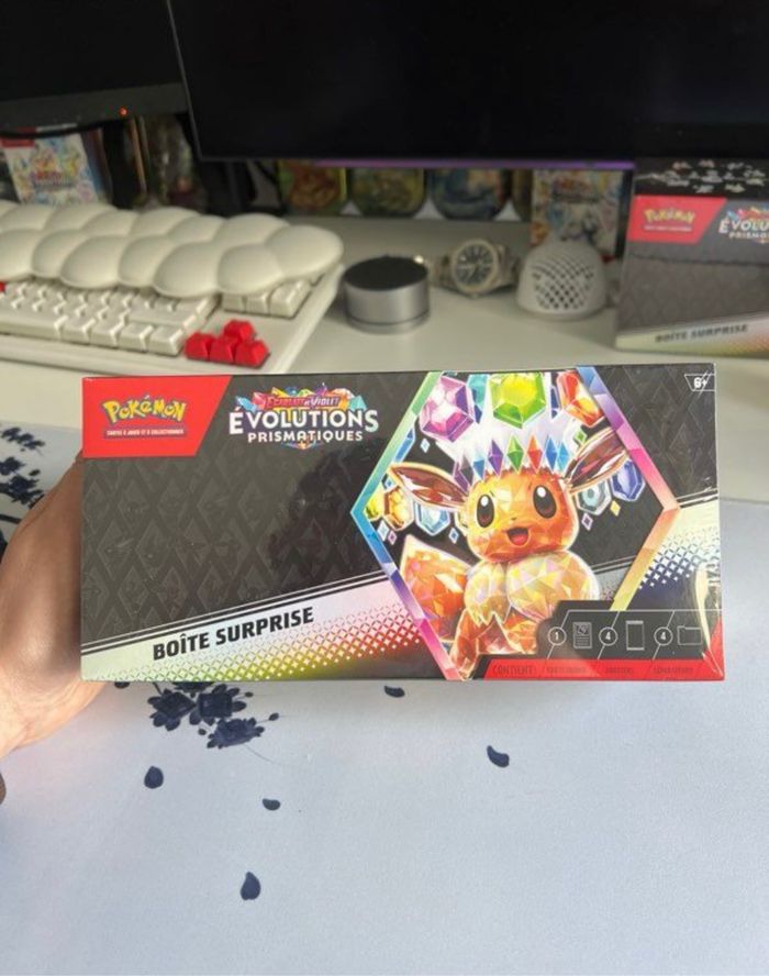 Bonjour je vends cette boîte surprise ev8,5 - évolutions prismatiques contenant 4 boosters et 1 carte promo aléatoire Disponible en envoi et en Main propre sur Montpellier