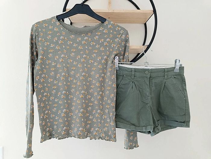10 ans ensemble Teeshirt côtelé tape a l oeil et short kiabi