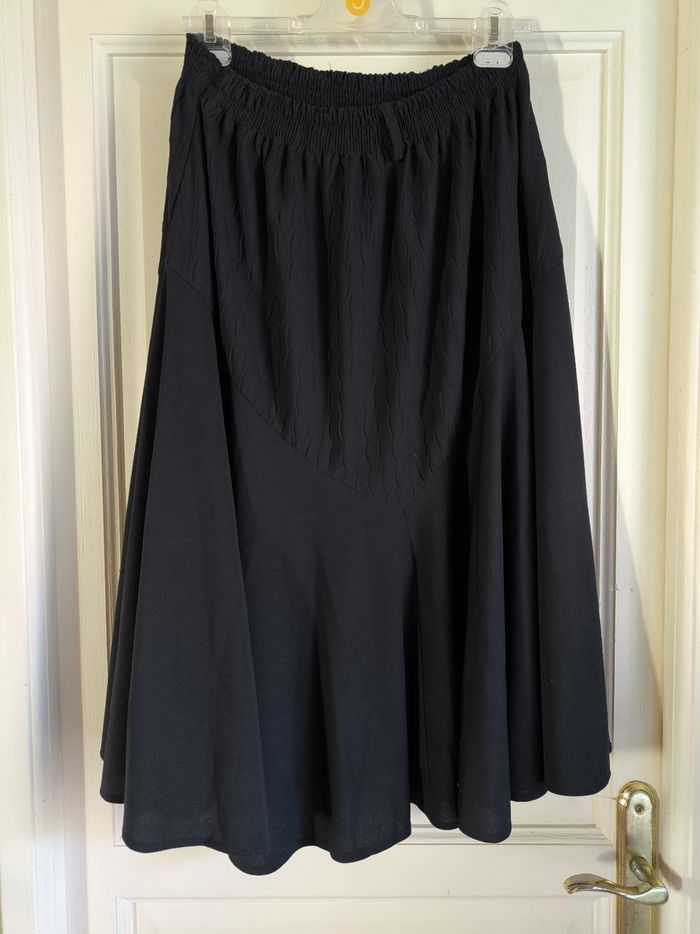 Jupe Modèle Rock Taille unique • Coloris noir • Taille élastique • Effet froissé • Volants, fluide • Stretch Largeur taille non étirée : 34 cm Largeur taille étirée au maximum : 72 cm Longueur totale : 76 cm En très bon état #evelyne_taille_36 #evelyne_taille_38 #evelyne_taille_40 #evelyne_taille_42