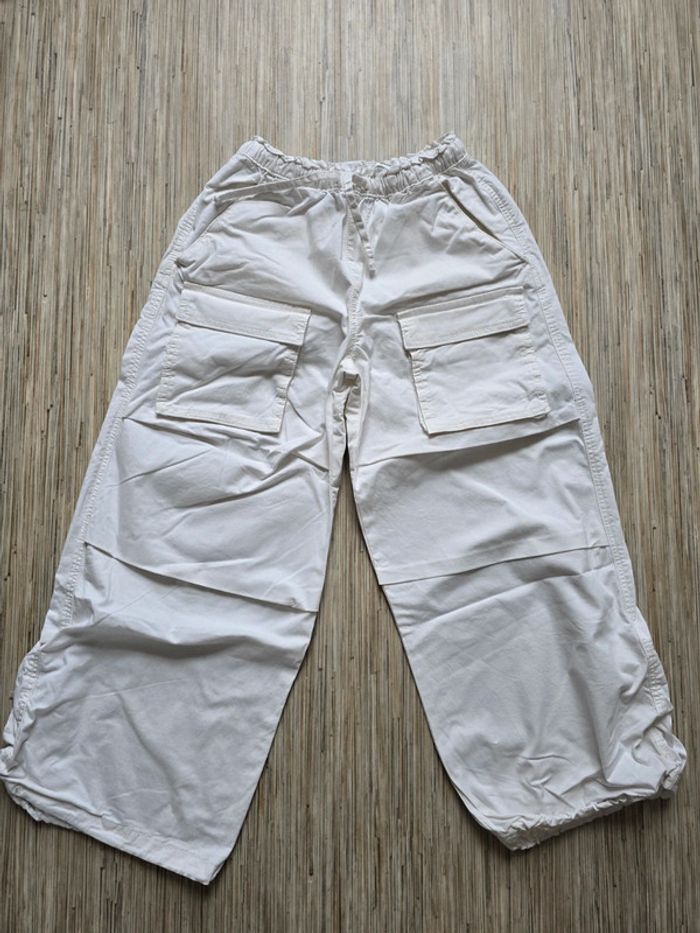 Pantalon coupe parachute blanc H&M Taille 10 ans En très bon état général. Retroussable en bas des jambes.