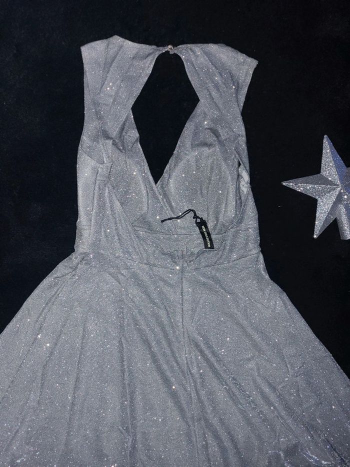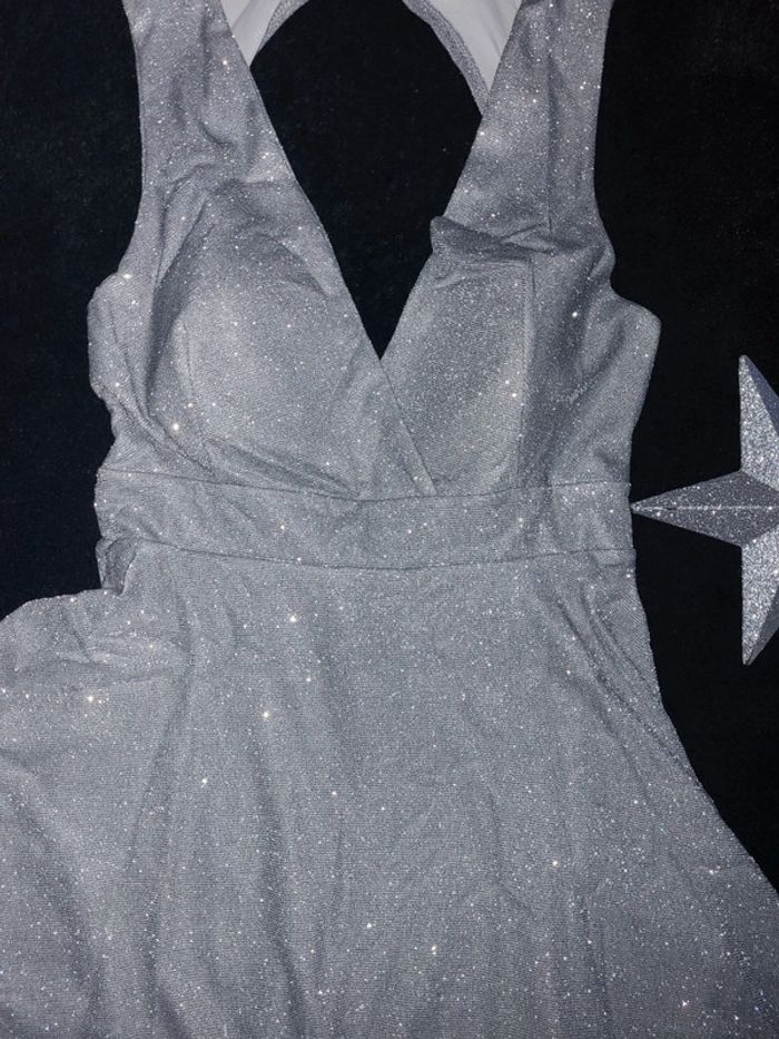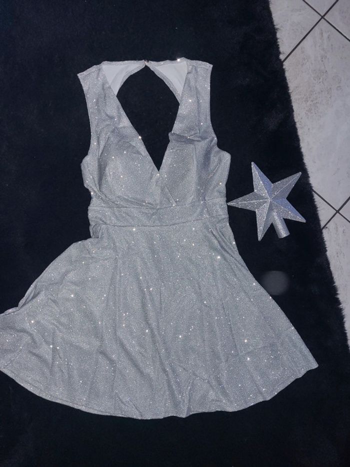 Très jolie robe à paillettes dos nu de couleur argenté Idéal pour les fêtes de fin d'année #noel