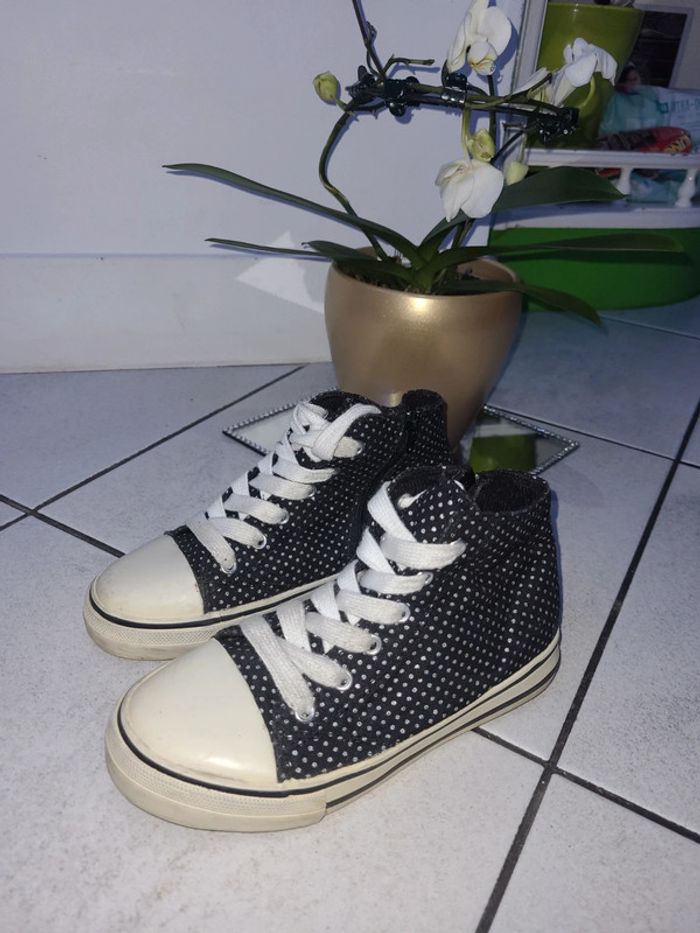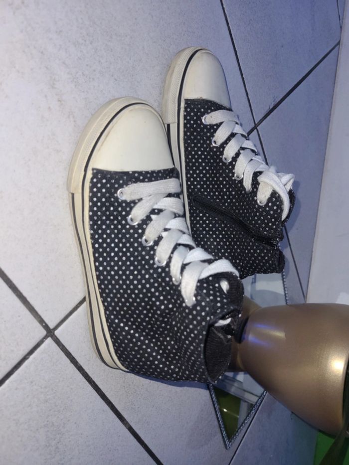Jolie petite basket avec zip sur le côté noir à pois argenté