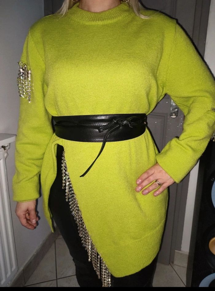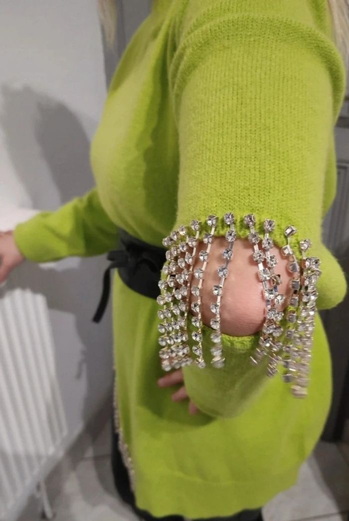 Taille unique Coupe oversize Couleur vert Avec strass Très original