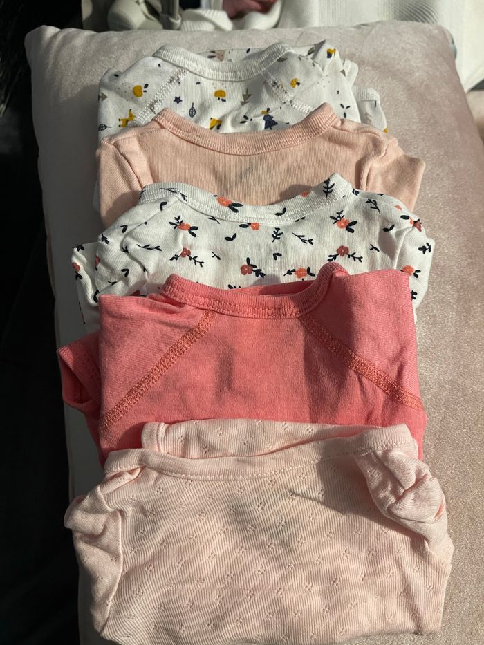 Vend lot de 5 bodys fille taille 1 mois très bon état mis 2 semaines.